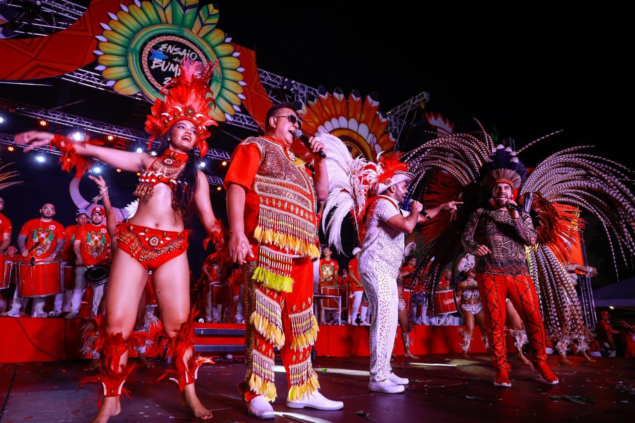 O cantor Leonardo Castelo abriu os trabalhos no curral de sábado, preparando a nação vermelha para o show “Segredos do Coração”. Em um guindaste, a entrada de Israel Paulain, acompanhado pelo tripa Batista Silva, dando vida ao Boi Garantido, surpreendeu e revelou que fortes emoções estavam por vir durante a noite.