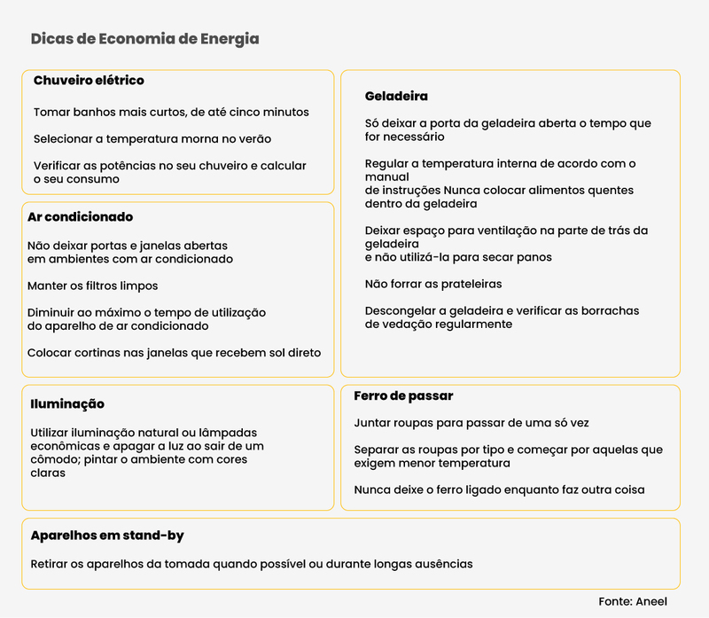 “Por isso que é muito importante para a família usar a energia elétrica com a melhor gestão possível. Não deixando a luz acesa em cômodos que não estiverem sendo utilizados, monitorar o banho das crianças com chuveiro elétrico, não deixar eletrodomésticos que não estão sendo usados plugados na corrente elétrica. Todas essas medidas são fundamentais para a economia. Até mesmo, quando possível, a troca de um eletrodoméstico antigo, pouco eficiente em energia, por um mais novo, que seja mais eficiente”, orienta.