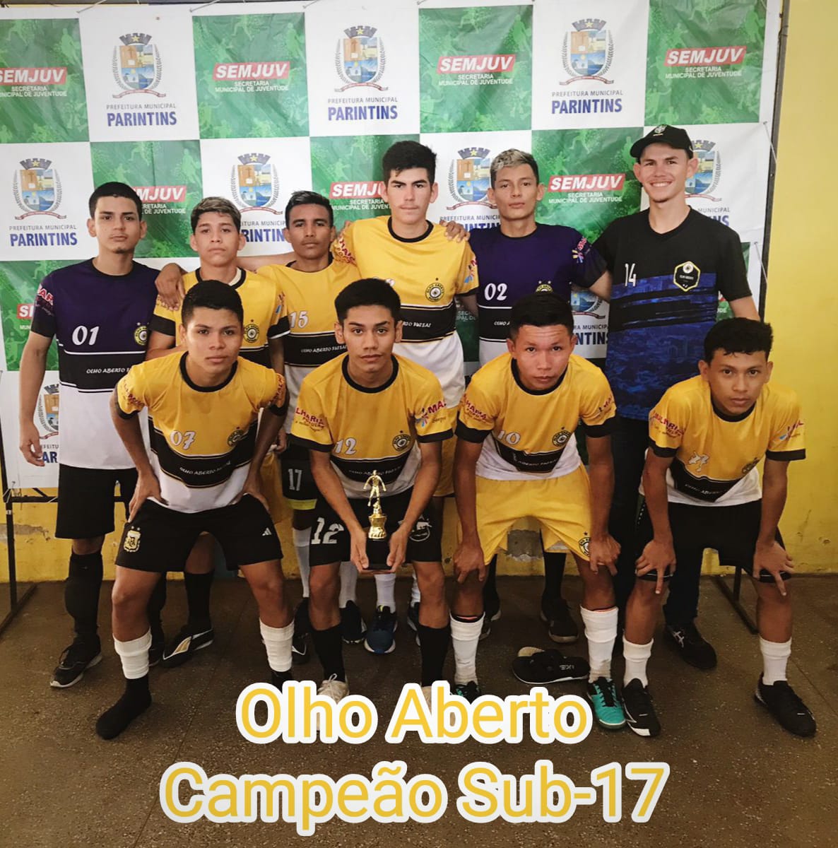 As equipes do Carmo Parintins (Sub-15) e Olho Aberto (Sub-17) são os campeões da 1ª Copa Semjuv de Futsal de Base. As finais da competição promovida pela Prefeitura de Parintins sob a coordenação da Secretaria Municipal da Juventude, Esporte e Lazer – Semjuv aconteceram na tarde desta quinta-feira, 02 de fevereiro, no ginásio de esportes Elias Assayag.
