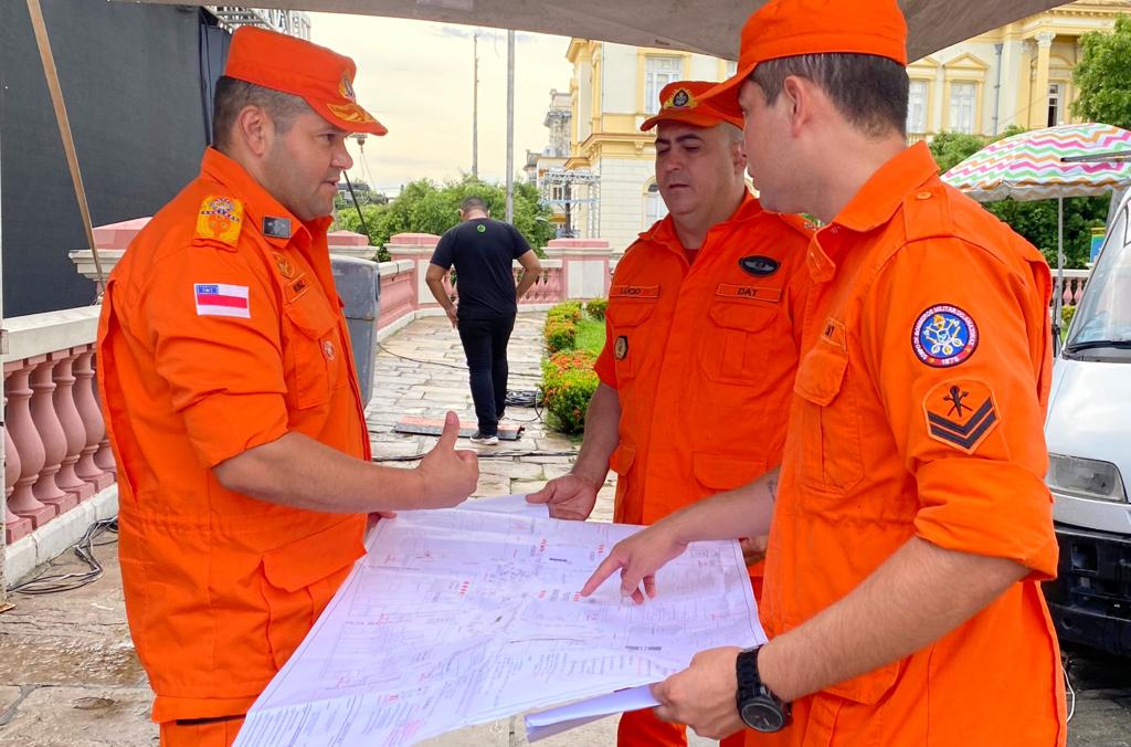 O Corpo de Bombeiros Militar do Amazonas (CBMAM) realizou, no início da tarde deste domingo (31/12), a vistoria final da estrutura montada para a queima de fogos de artifício, que marcará o início de 2024 no Réveillon do Largo. Ao todo, serão mais de sete minutos de show pirotécnico em três pontos estratégicos, proporcionando um espetáculo em diversas cores no céu.
