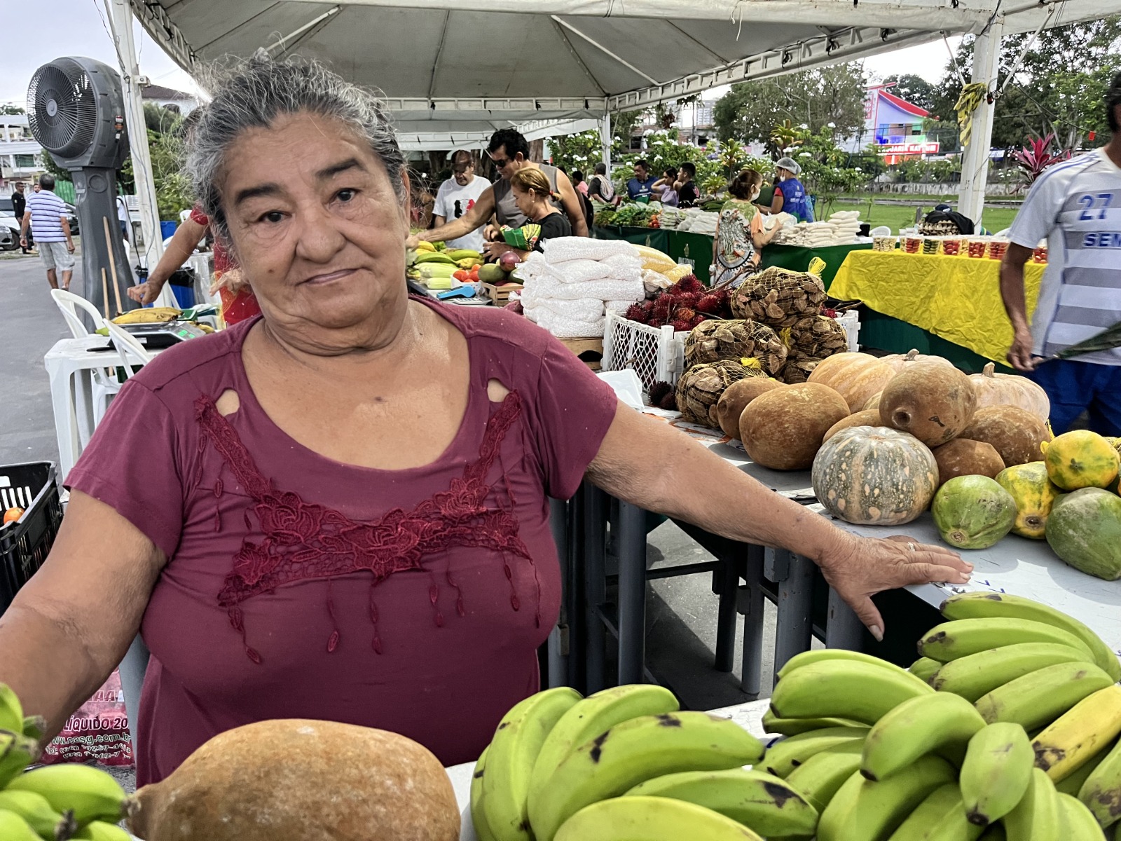 Já a produtora rural e feirante Ana Maria dos Santos, de 74 anos, cultiva o cacau no ramal Novo Horizonte, na AM-010, bem como outras frutas, como o cupuaçu, a banana, castanha, rambutan e mamão.