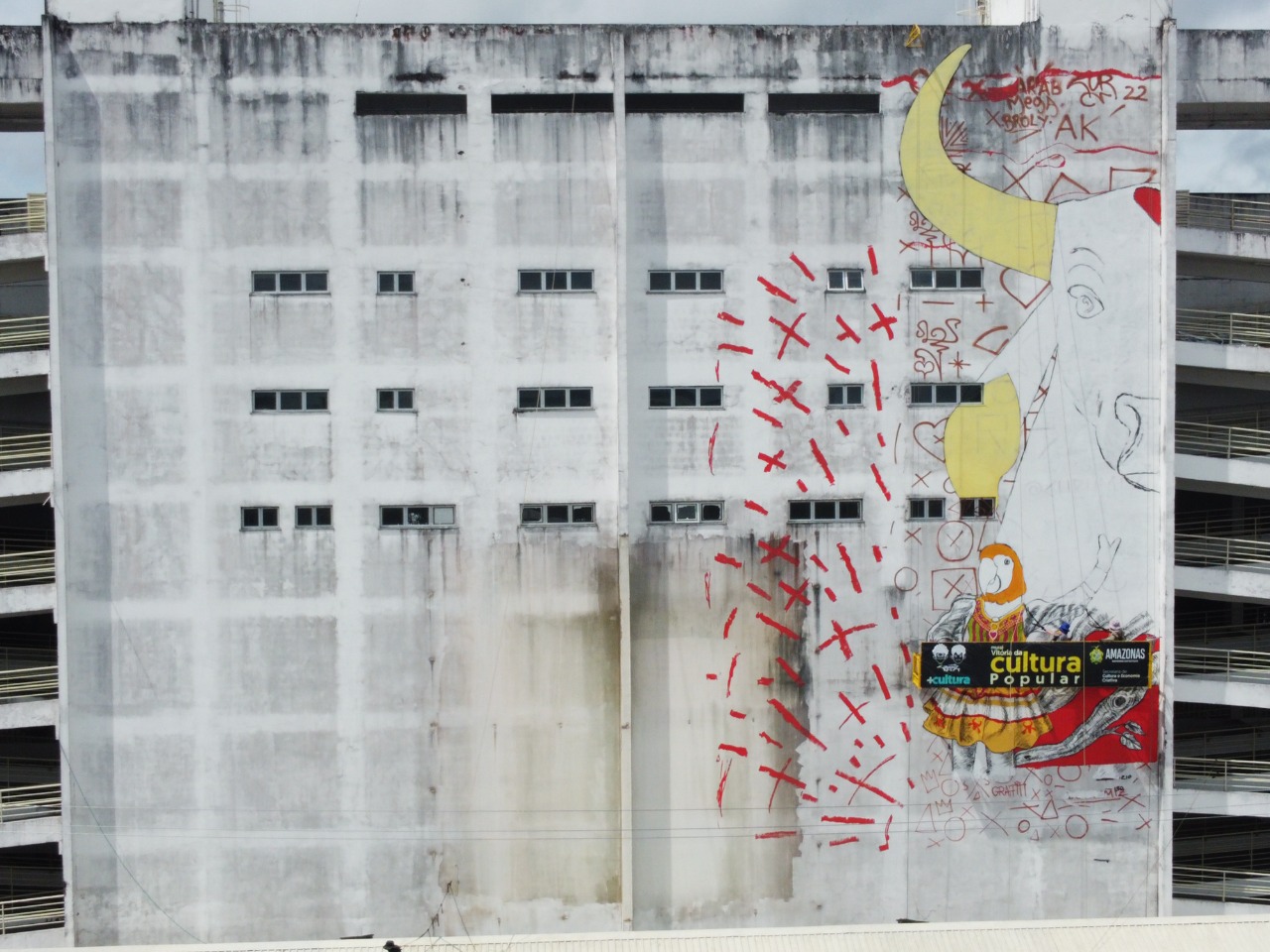 Os preparativos para o 55º Festival Folclórico de Parintins estão a todo vapor. Além da fachada do espaço, que tem quase 30 metros de altura, uma galeria de arte a céu aberto, de mais de 2 mil metros quadrados, já começa a colorir os muros da ilha Tupinambarana.