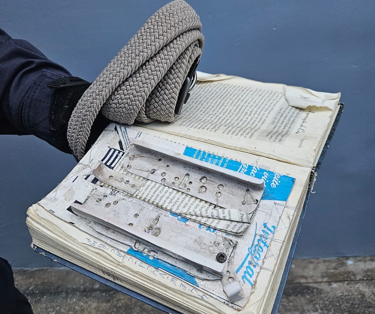 Também chamou atenção a quantidade de objetos inusitados encontrados de posse dos detentos, como cortadores de unha, alicates de unha, retrovisores, fone, agulha e linha para roupas, óleo de máquina, máquina de cortar cabelo e até uma bíblia adaptada para armazenar objetos.