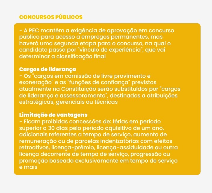 É em cima de dados como esse que o Ministério da Economia busca a otimização dos serviços pelo texto em discussão. Entre os principais pontos da PEC, estão restrições às estabilidades no serviço público e a criação de cinco tipos de vínculos com o Estado.