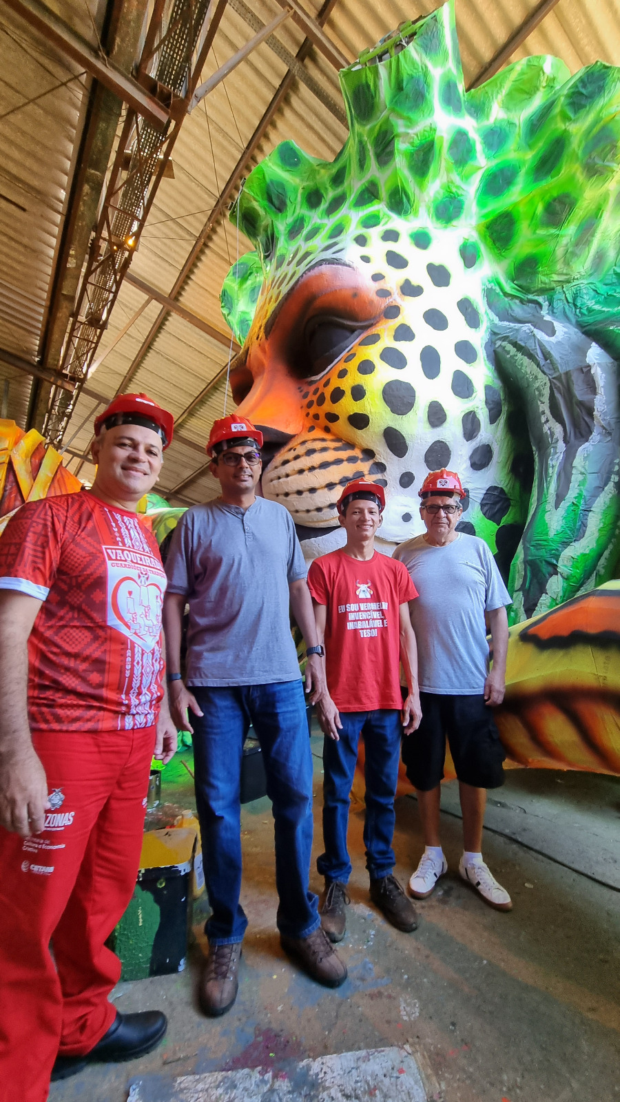 Uma comitiva da Secretaria de Cultura e Economia Criativa do Estado (SEC) visitou, na manhã deste domingo a Cidade Garantido e viu de perto o trabalho nos galpões e ateliês. O secretário Marcos Apolo e o diretor executivo da Maná Produções, André Guimarães, estavam no grupo que foi recebido pela diretoria do boi e a comissão de artes.